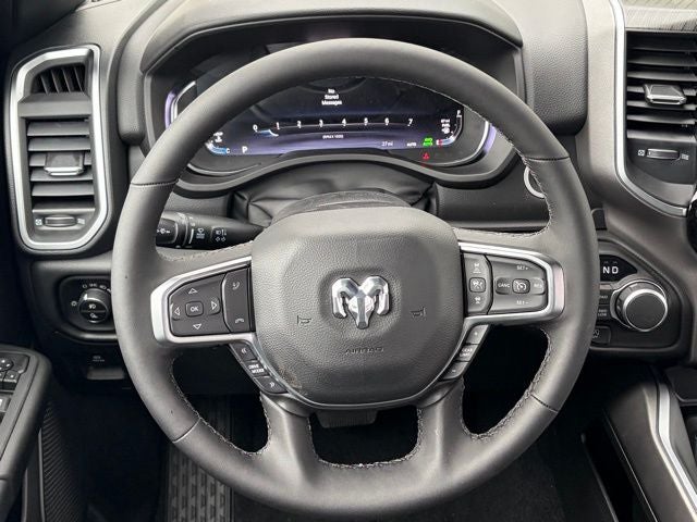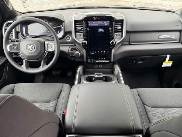 This truck is loaded with useful factory upgrades, including the Bed Utility Group with pick-up box lighting, spray-in bedliner by Mopar, exterior 115V outlet, and 4 adjustable cargo tie-down hooks. It also includes the highly desirable Multi-Function Tailgate and RamBox Cargo Management System with truck bed cargo divider for added storage and utility. Inside, the Big Horn Level 2 Equipment Group adds heated front seats, heated steering wheel, 8-way power driver seat, 2-way power lumbar, rear 60/40 folding seat, rear center armrest, rear power-sliding window, dual-zone automatic climate control, power adjustable pedals, Uconnect 5 NAV with 12-inch touchscreen, 9 amplified speakers with subwoofer, power tailgate release, 2nd-row in-floor storage bins, and a 400W inverter. Front and rear rubber floor mats plus rear under-seat storage add even more everyday usability.