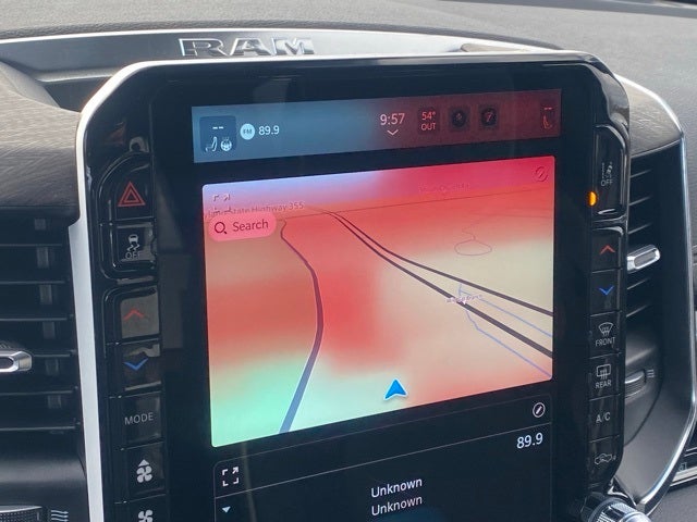 Inside, it feels more like a high-end SUV than a work truck. Leather-trimmed heated and ventilated front seats, heated rear seats, memory settings, and a dual-pane panoramic sunroof make commuting and road trips easier year-round. The massive 14.4-inch Uconnect 5 Nav touchscreen, front passenger interactive display, Harman Kardon audio, Ram Connect services, and digital cluster keep your maps, music, and vehicle info right where you want it. Advanced driver-assist tech works in the background to help in traffic, on long highway runs, and in tight parking lots.
