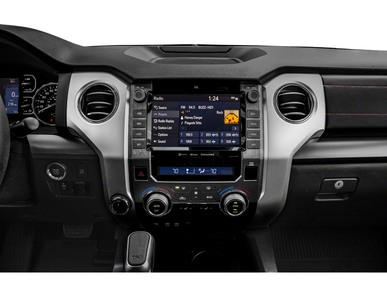 - Radio: Entune Premium Audio AM/FM w/HD Radio & CD -inc: integrated navigation system, MP3/WMA playback capability, AM/FM cache radio, 9 speakers, 7" high-resolution touch-screen w/split-screen display, auxiliary audio jack, USB media port, HD Radio predictive traffic and Doppler weather overlay, Bluetooth® hands-free phone capability w/advanced voice recognition, phone book access and music streaming and Siri Eyes Free, Entune App Suite, Destination Search, iHeartRadio, Yelp and Slacker Radio, SIRIUSXM Satellite Radio, complimentary SiriusXM All Access 90-day trial subscription